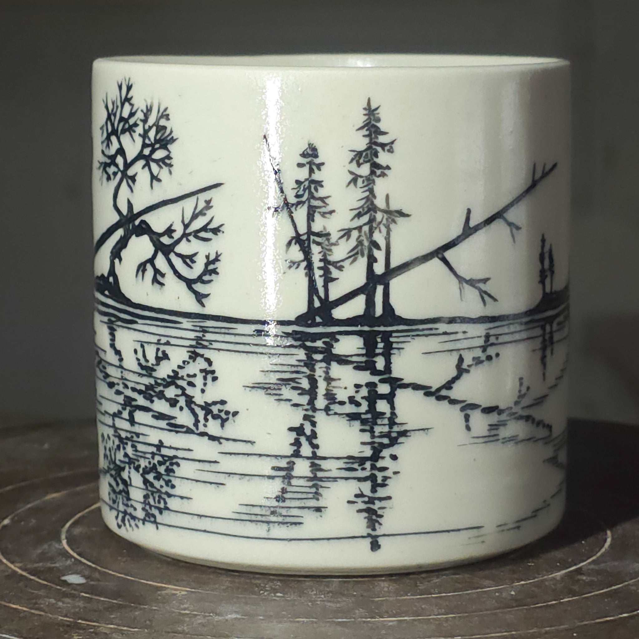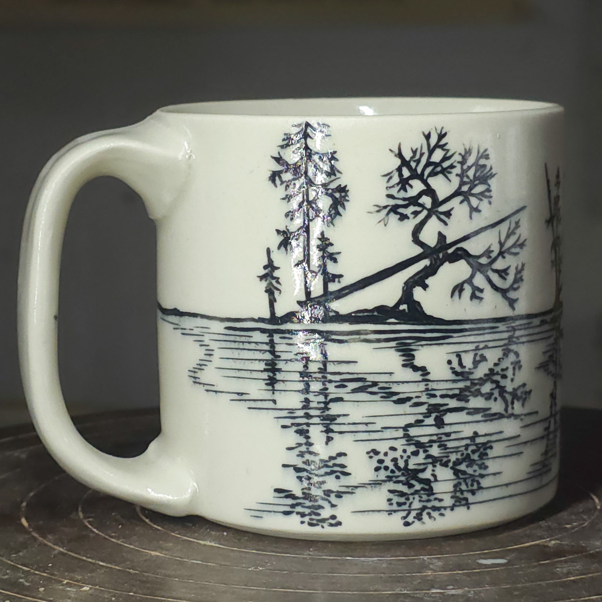 Creating symmetry that's imperfect is what nature does. The practice of carving reflections is both focus and release - flow. I often start these mugs in the morning right after coffe and finish them.....later.